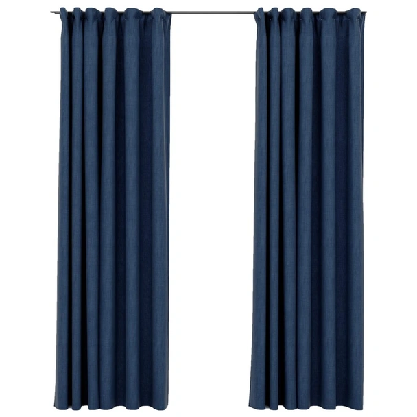 Затъмняващи завеси с куки имитация лен 2 бр. сини 140x245 см